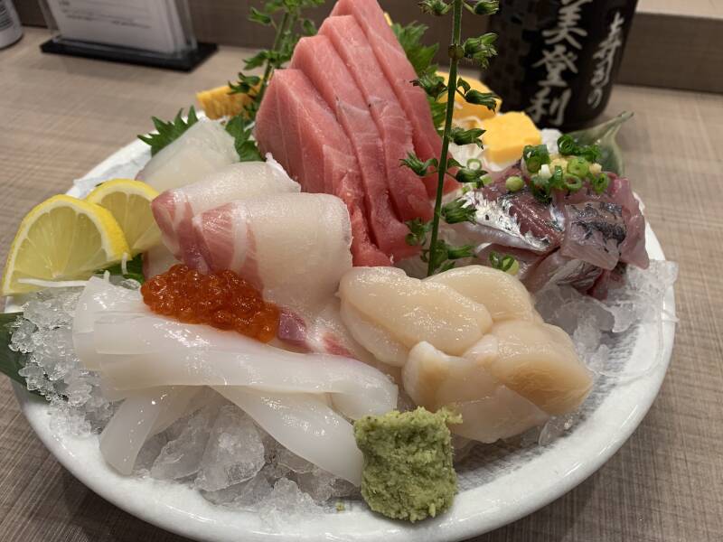 Once on board, we settle into our journey and open up the bento boxes. The food is pretty good, considering. The fish is fresh enough (obviously - its raw) and everything is nicely seasoned, but understandably short of mind-blowing.