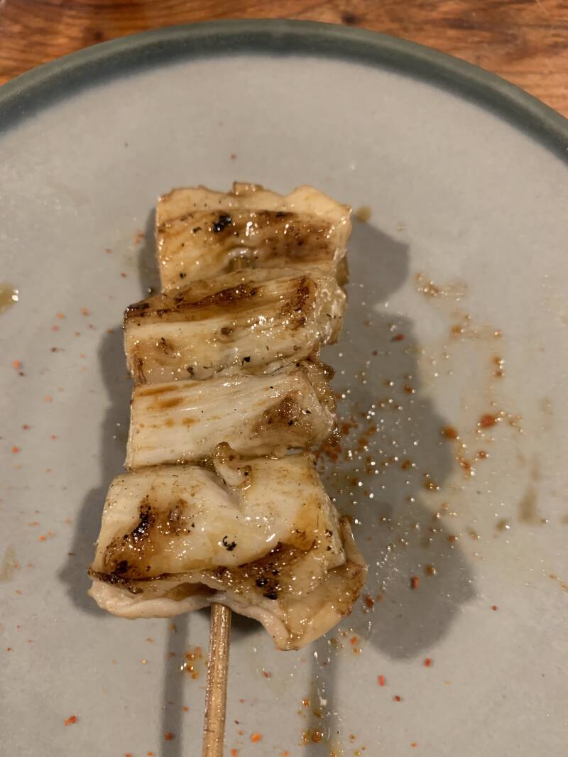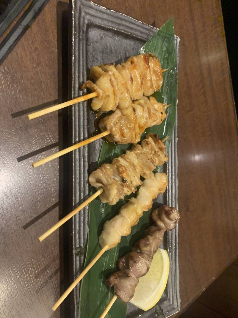 There's plenty of confusion — moments where we don't know exactly what animal part we are eating or whether we even ordered it. Small individual kebabs are passed our way every couple of minutes or so — there's no real ordering system, they just count up the skewers by our plates when we hold our hands up and tell them we are done.